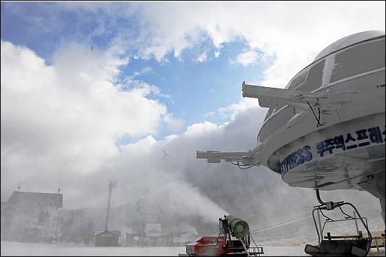 강원도 지역 스키장이 때이른 눈으로 지난주부터 개장한 가운데 전북 무주리조트에도 15일 첫 눈이 내려 개장준비가 한창이다.