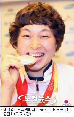 2008 아테네올림픽 은메달리스트 윤진희(23,원주시청)가 2009 세계역도선수권대회에서 한국 메달레이스의 첫 테이프를 끊었다.