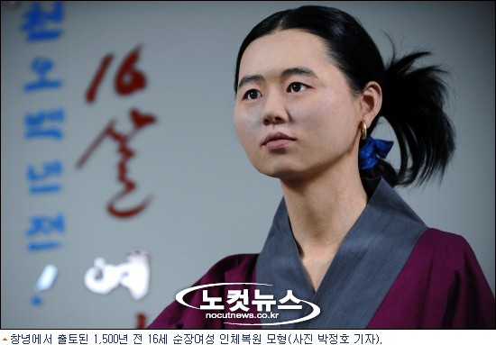 1500년 전 유골이 16세 여성으로 복원되었다. 국립가야문화재연구소는 경남 창녕 송현동 15호분에서 출토된 1,500년 전 고대 순장 인골의 인체복원모형을 공개했다.