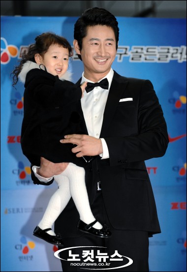 [BestNocut_R]11일 오후 서울 삼성동 코엑스 오디토리움에서 열린 ''CJ 마구마구 프로야구 2009 골든글러브 시상식''에서 LG 박용택 선수가 자신의 딸과 함께 포토월에서 포즈를 취하고 있다.