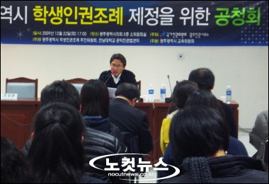 광주광역시 학생인권조례 추진위원회와 전남대 공익인권법 센터는 22일 오후 5시 광주시의회에서 광주광역시 학생인권 조례안 공청회를 했다.