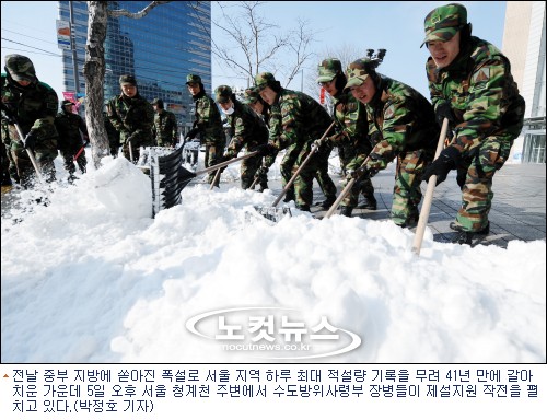 한편 서울시는 많은 눈이 상시적으로 내리는 외국의 도시사례를 분석해 서울시가 갖춰야 할 장비와 신속한 제설대응 체계, 민간기업 협력 참여방안등을 연구해 가까운 시일내에 ''''서울시 종합 제설대책''''을 발표할 계획이다.