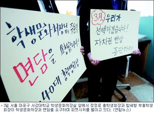 서강대는 지난 1일 교수 9명으로 구성된 장학지도위원회를 열고 지난해 12월 8~9일 재투표로 당선된 이후 논란이 끊이지 않았던 총학생회를 인정하지 않기로 했다고 3일 밝혔다.