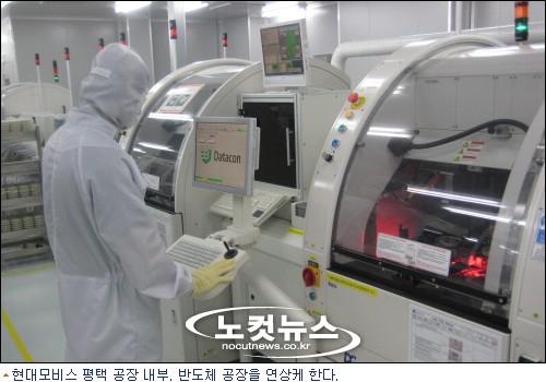 경기도 평택시 포승공단의 현대모비스 포승공장. 자동차 부품 공장하면 으레 불꽃 튀기는 용접과 시끄러운 기계음 등이 연상되지만 지난 2일 방문한 이곳은 흡사 반도체 공장과 같았다.
