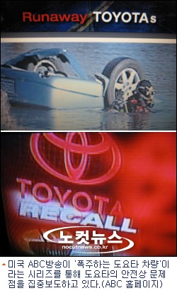 ABC방송은 도요타의 대규모 리콜 발표가 나오기 전인 지난해 11월부터 ''폭주하는 도요타 차량(runaway Toyotas)''이라는 제목의 시리즈를 통해 도요타의 안전성 문제를 집중 조명해왔다.