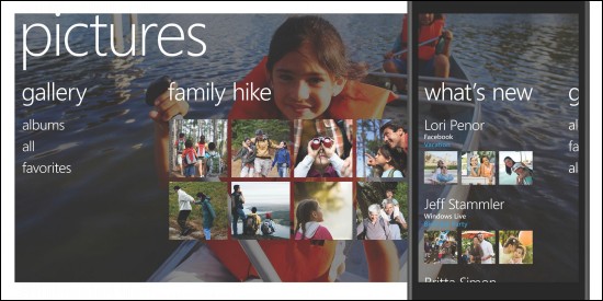 이와 함께 ''윈도우 폰 7 시리즈''는 ''윈도우 폰 허브(Windows Phone Hubs)''를 통해 웹, 애플리케이션, 서비스 상의 연관 콘텐츠들을 한 화면에 볼 수 있도록 통합해주어 일상적인 작업을 간편히 할 수 있도록 도와준다.
