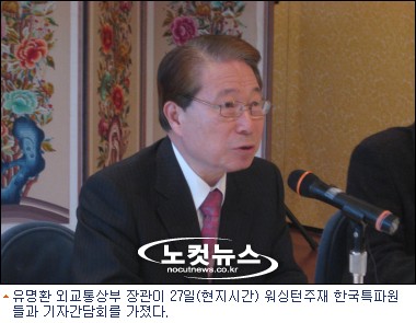 미국을 방문중인 유명환 외교통상부 장관이 27일(현지시간) 워싱턴 주재 한국특파원들과의 기자간담회에서 밴쿠버 동계올림픽 여자 피겨스케이팅 금메달리스트 김연아 선수에 대한 힐러리 클린턴 미국 국무장관의 극찬을 다시 한번 소개했다.
