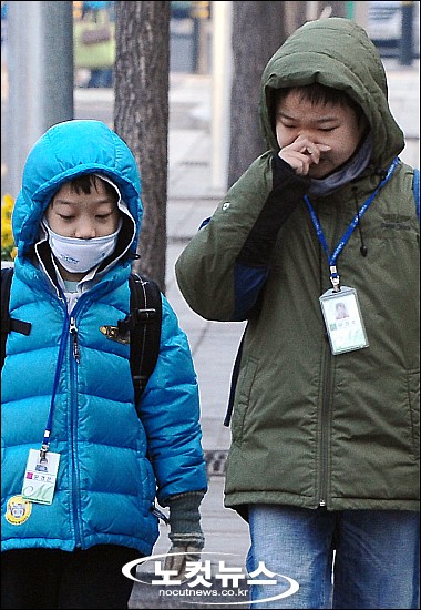[BestNocut_R]서울의 기온이 영하 1도로 떨어지며 반짝 추위를 보이고 있는 가운데 3일 오전 목동을 지나 등굣길에 오른 아이들이 두꺼운 옷과 마스크 등을 착용한 채 학교로 향하고 있다.