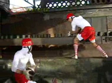 차승원이 MBC TV 토요일 무모한 도전에서 연탄나르기를 하고 있는 장면(MBC 제공/노컷뉴스)