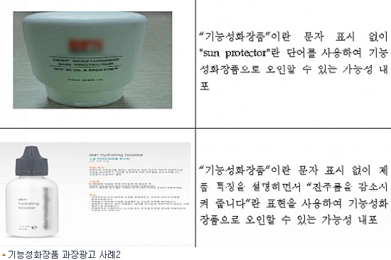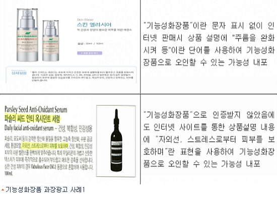특히 소비자가 기능성 화장품의 과장 광고에 현혹되지 않기 위해서는 화장품 구매 시 화장품의 용기 또는 포장에 ''''기능성 화장품 또는 인증번호''''라는 문구가 표시되어 있는지 꼭 확인하고 구매할 것을 당부했다.