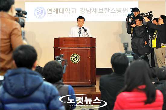 고 최진실의 동생인 탤런트 최진영이 서울 논현동의 자택에서 숨진 채 발견돼 충격을 주고 있는 가운데 29일 오후 강남 세브란스 병원 대강당에서 강성웅 홍보실장이 브리핑을 하고 있다.