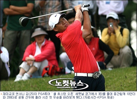 앤서니 김은 4일(한국시간) 미국 텍사스주 험블의 레드스톤 골프장 토너먼트 코스(파72. 7,457야드)에서 계속된 대회 3라운드에서 3타를 더 줄여 중간합계 10언더파 206타로 브라이스 몰더(미국)과 함께 공동 1위에 나섰다.