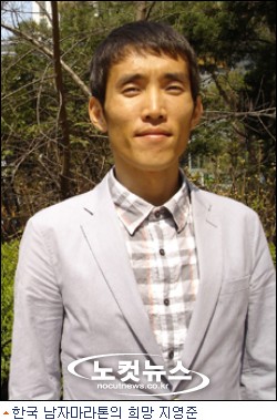 ''한국 마라톤의 희망'' 지영준(29, 코오롱)은 지난 11일 대구국제마라톤에서 2시간 9분 31초로 2위를 차지했다. 작년 이 대회에서 개인 최고기록(2시간 8분 30초)으로 우승한 그는 "2연패를 못해 아쉽다"면서도 초속 6m의 바람에 맞서 ''재기의 레이스''를 펼친 덕분에 표정이 밝았다.