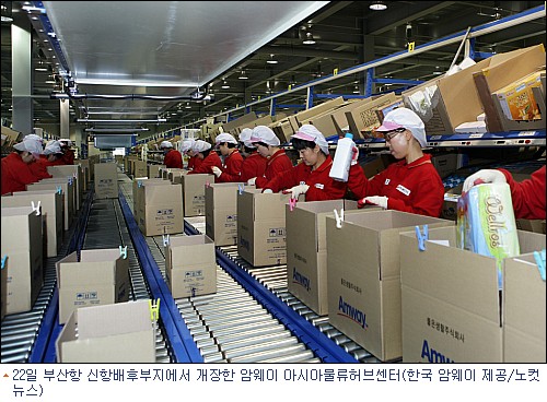 부산항 신항 배후물류단지에 다국적 기업 암웨이의 아시아 지역 물류를 총괄하는 아시아물류허브센터가 문을 열었다.
