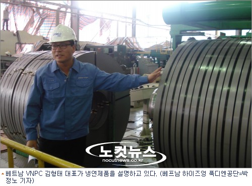 베트남 VNPC 김형태 대표가 냉연제품을 설명하고 있다.(베프남 하이즈엉 푹디엔공단=박정노 기자)
