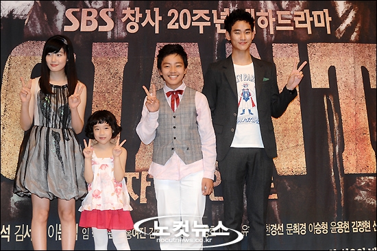 SBS 창사 20주년 대하드라마 ''자이언트''(극본 장영철 정경순·연출 유인식)의 아역 4인방 (왼쪽부터)여진구, 남지현, 박하영, 김수현이 4일 오후 서울 목동 SBS 사옥에서 열린 제작발표회에서 포즈를 취하고 있다.