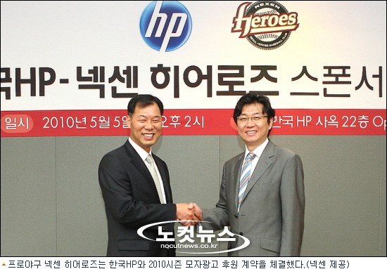 프로야구 넥센 히어로즈는 한국HP와 2010시즌 광고 후원 계약을 체결했다고 6일 밝혔다.