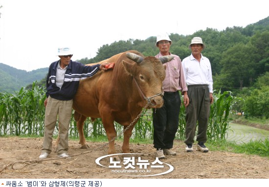 191전 4패, 소싸움 대회 19연속 우승을 자랑하며 싸움소의 전설로 불리는 경남 의령의 싸움소 ''범이''가 지난 22일 폐사했다.