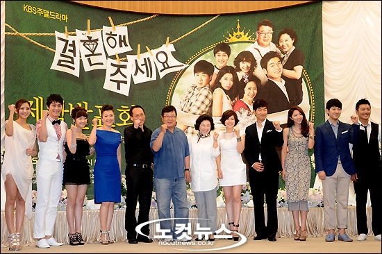 KBS 2TV 새 주말연속극 ''결혼해주세요''(극본 정유경, 연출 박만영)의 주연배우들이 15일 오후 서울 대치동 컨벤션 마벨러스에서 열린 제작발표회에서 포즈를 취하고 있다.