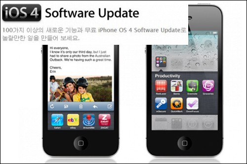 ''iOS4''는 아직 출시전인 최신 ''아이폰 4''에서 최적화된 OS 체제지만, 국내에서 판매된 아이폰 3Gs에서도 ''iOS4'' 업그레이드가 가능하다.