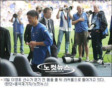 10일 데뷔전에 앞서 몸을 푼 뒤 라커룸으로 들어가고 있는 이영표 선수.