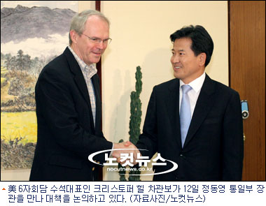 이에 앞서 미국측 수석대표인 힐 국무부 동아태 차관보는 전날 저녁 정동영 통일부 장관과 송민순 우리측 수석대표와 만나 한미간 최종 입장을 조율했다.
