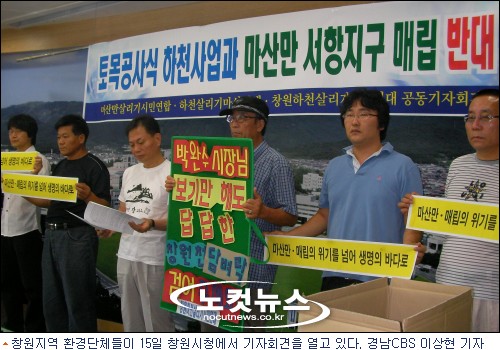 마산만살리기 시민연합과 창원하천살리기 시민연대 등 3개 단체는 15일 창원시청에서 공동기자회견을 열고, 생태하천 조성사업이 진행중인 창원천에 들어선 콘크리트 옹벽을 당장 철거할 것을 촉구했다.