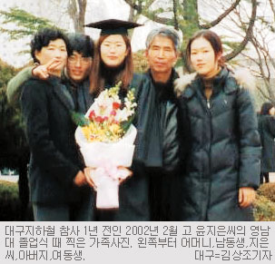 윤씨는 딸의 일기장 출판을 계기로 실의에서 벗어나 부인과 둘째딸 주은(23·대구대3)양,아들 준용(20)군과 더불어 새로운 삶을 살기로 다짐했다고 말했다.