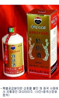 따라서 시장에서 ''''특별공급 마오타이주''''란 이름을 붙인채 팔리고 있는 술은 모두 가짜라는 것이다.