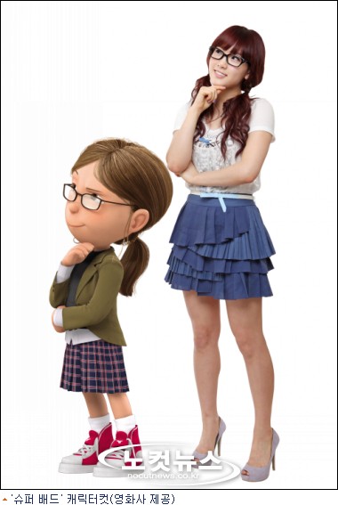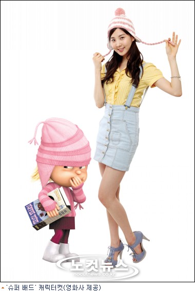 북미에서 흥행에 대성공한 3D 애니메이션 ''''슈퍼 배드''''는 슈퍼 악당 ''''그루''''를 슈퍼 대디로 변화시키는 세 소녀의 활약이 기대되는 작품. 태연과 서현이 세 소녀 중 첫째 마고와 둘째 에디트를 맡았다. 마고의 목소리 연기를 맡은 태연은 마고와 외양까지 유사하다.