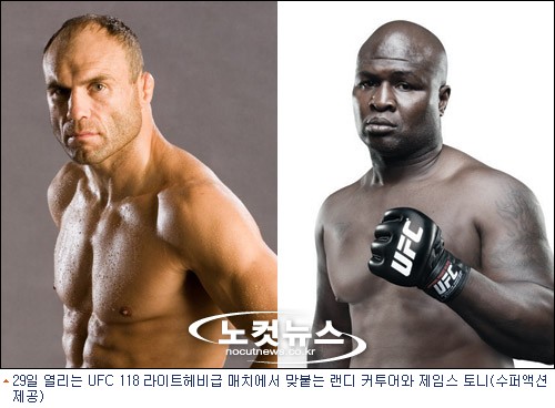 ''더티복싱의 창시자'' 랜디 커투어(47)와 25년간 복싱계에서 활약한 정통복서 제임스 토니(42 이상 미국)가 오는 29일(한국시각) 미국 메사추세츠주 보스턴 ''TD 가든''에서 열리는 UFC 118 라이트헤비급 매치를 갖는다.