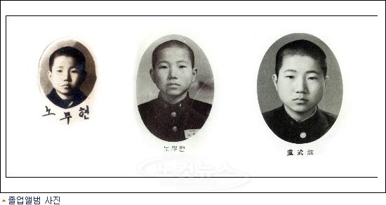 이번에 처음 공개된 사진은 노 대통령이 졸업한 대창초등학교와 진영중학교, 부산상고의 졸업앨범 사진을 비롯해 군 복무 시기와 사법연수원 시절 사진 등 50여 장이다.