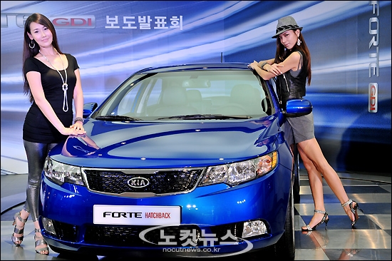 기아자동차가 준중형 포르테에 직분사 GDI 엔진을 장착한 ''포르테 GDI''를 출시한 가운데 2일 오전 서울 압구정동 기아자동차 압구정 사옥 전시장에서 열린 신차발표회에서 모델들이 신차를 선보이고 있다.