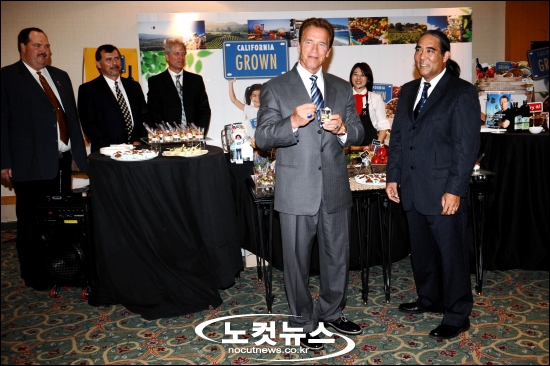 [BestNocut_R]캘리포니아 관광청 주최로 15일 오후 서울 반포동 JW메리어트 호텔에서 열린 ''캘리포니아-한국:관광, 무역 및 투자 증진을 위한 행사''에 참석한 아놀드 슈왈제네거 주지사가 홍보를 위해 캘리포니아 음식을 맛있게 먹는 모습을 보여주고 있다.