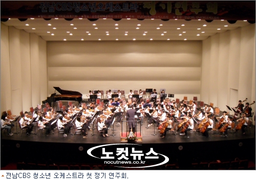 ''전남CBS 청소년 오케스트라(이하 청소년 오케스트라)'' 첫 정기 연주회가 만석에 입석 관객까지 들어차면서 대성황을 이뤘다.