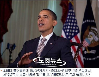 버락 오바마 미국 대통령이 9일(현지시간) 한국을 또 다시 거론하며 미국 교육의 경쟁력 제고를 강조했다.
