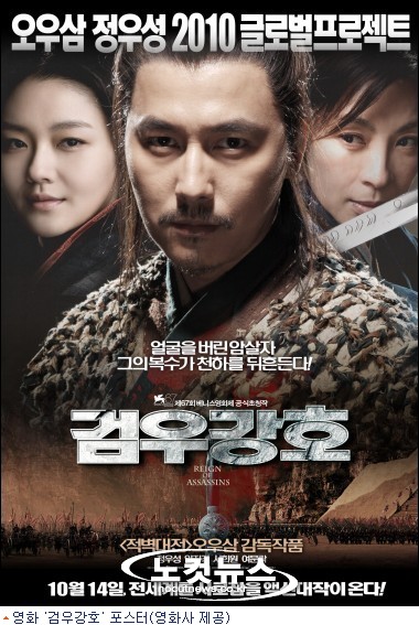 정우성의 첫 해외 진출작으로 화제를 모은 ''검우강호''는 슬픈 운명의 굴레에서 얼굴도 이름도 버리고 복수를 선택할 수 밖에 없었던 암살자의 천하를 뒤흔든 복수극. 오우삼 감독과 수 차오핑 감독이 공동 연출을 맡아서인지 정통 무협 액션이 주는 재미를 충분히 전해주면서도 그 사이사이에 다양한 변주가 눈길을 사로잡는다. 14일 개봉.