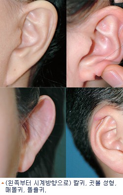 ◈ 귓볼 없이 날카로운 ''칼귀'' 귓볼이 굴곡 없이 턱에 연결된 모양을 ''칼귀''라고 한다. 선천적 이유 외에도 얼굴주름을 당기는 ''안면거상술''을 받은 뒤 칼귀가 되는 경우도 많다.