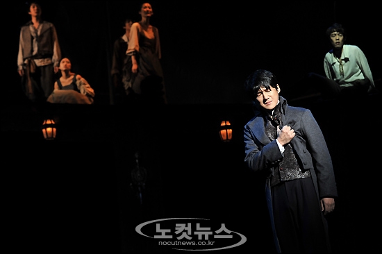 뮤지컬 ''젊은 베르테르의 슬픔''의 송창의가 22일 오후 서울 광진구 유니버설아트센터에서 열린 프레스콜 공연에서 애절한 연기를 선보이고 있다.