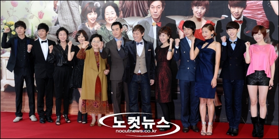 [BestNocut_R]25일 오후 경기도 일산 MBC드림센터에서 열린 새 일일시트콤 ''몽땅 내사랑''(극본 박민정, 연출 강영선, 황교진) 제작발표회에서 (왼쪽부터) 출연배우 연우진, 윤두준, 방은희, 윤승아, 김영옥, 정호빈, 김갑수, 박미선, 전태수, 김나영, 조권, 손가인이 취재진을 향해 포즈를 취하고 있다.