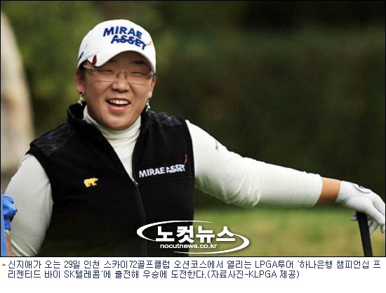 신지애는 오는 29일부터 사흘간 인천 스카이72골프클럽 오션코스(파72.6,364야드))에서 열리는 LPGA투어 ''하나은행 챔피언십 프리젠티드 바이 SK텔레콤''에 출전해 우승에 도전한다.