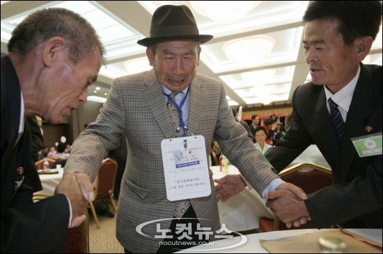 [BestNocut_R]3일 오후 금강산 면회소에서 열린 남북이산가족 2차 방문단 단체상봉행사에서 남측의 조중휘(76)할아버지가 북측의 조카들을 만나 울음을 터뜨리고 있다.