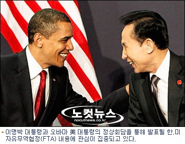 우리 정부로서도 오바마의 방한 기간에 한.미 자유무역협정(FTA) 문제를 원만히 매듭지어야 하는 숙제를 안고 있다.