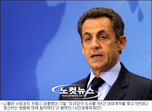 니콜라 사르코지 프랑스 대통령은 12일 "외규장각 도서를 5년간 대여계약을 맺고 5년마다 갱신하는 방법에 대해 (한국측과) 합의했다"고 밝혔다.