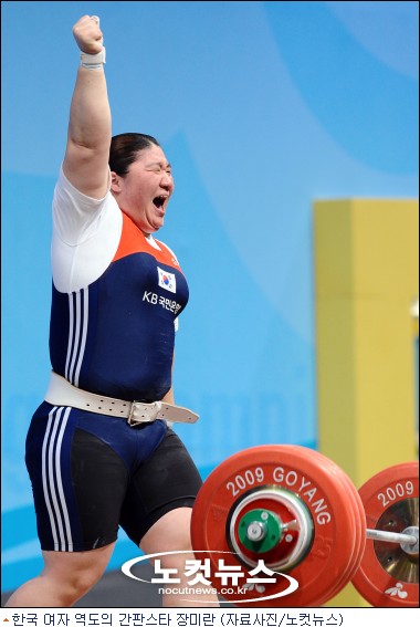 [BestNocut_R]결국 중국은 광저우 아시안게임을 앞두고 또 다시 세대교체를 단행했고 세 번째 주자가 바로 멍수핑이었다. 지난해 중국 대표선발전에서 무솽솽이 우승했음에도 불구하고 중국은 무솽솽을 제쳐놓고 4위였던 멍수핑을 대표로 뽑았다. 새 카드였다. 그러나 멍수핑은 국제대회 데뷔 무대였던 2009년 세계선수권에서 장미란보다 27kg이나 가벼운 297kg을 드는데 그쳤다. 장미란의 4연패였다.