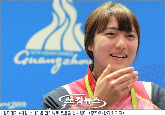 20일 광저오 아시안게임타운 메인미디어센터에서 열린 기자회견에서 정다래는 왜 ''''4차원''''이라는 수식어가 붙어다니는지를 톡톡 튀는 인터뷰로 보여줬다.