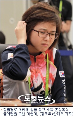 22일 광저우 기원에서 열린 2010 광저우아시안게임 바둑 혼성복식 결승전. 경기장에 들어선 이슬아(21, 한국기원)의 머리에는 손가락 길이 만한 침이 두 개나 꽂혀있었다. 경기가 시작되고 5분여가 지난 뒤 직접 침을 뽑아 버렸지만, 침을 꽂은 모습은 궁금증을 자아냈다.