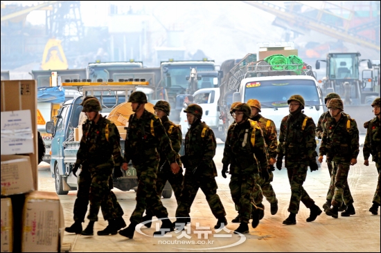[BestNocut_R]북한이 전날 서해 연평도 해상 마을에 200여 발의 해안포를 발사해 국지도발 최고 대비태세인 ''진돗개 하나''를 발령하는 등 비상태세에 돌입한 가운데 24일 오전 인천 남항 부두에서 현지 통신 및 전력 등을 복구할 물자가 출항을 준비를 하고 있다.
