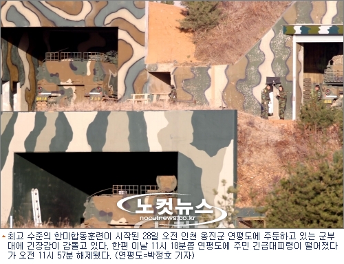 [BestNocut_R]28일 오전에는 북측 개머리 지역에서 수십여발의 포성이 들려와 연평도 전역에 ''주민 긴급대피령''이 발령되면서 주민과 언론사 취재기자들이 방공호로 긴급 대피하는 소동이 빚어졌다.