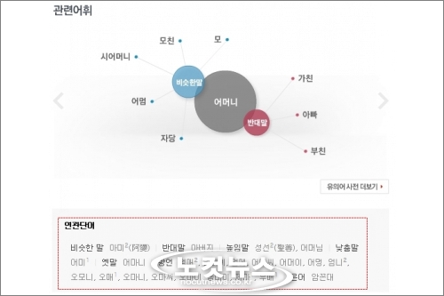 이에 따라 이용자들은 네이버 국어사전을 통해 단어 의미 외에 해당 단어와 비슷한말·반대말 정보를 최대 10건까지 함께 확인할 수 있다.